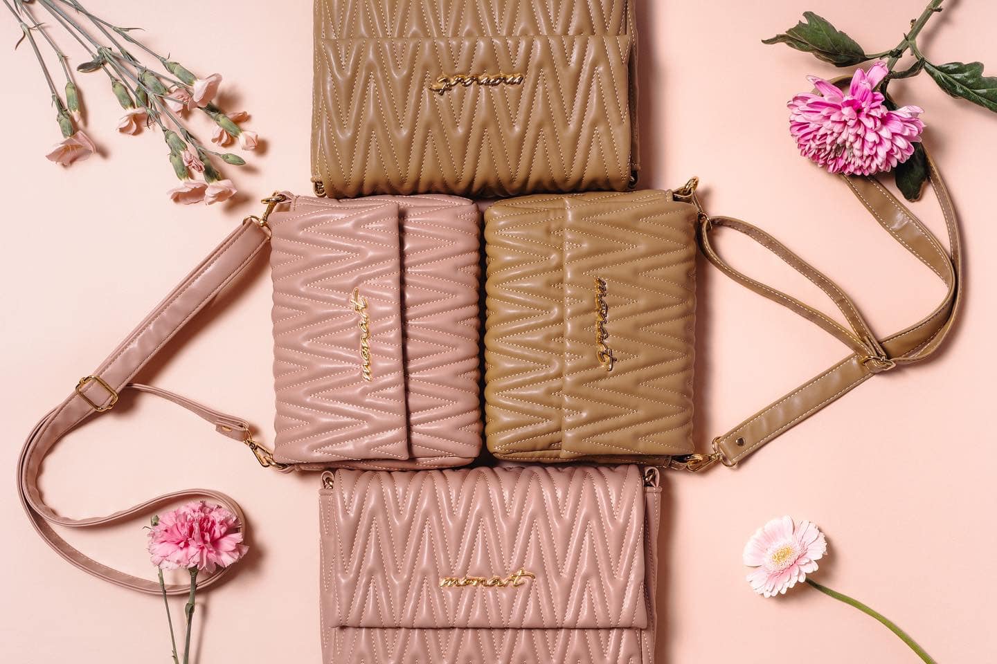 Model Vienna u crnoj/nude/rozoj/mocca boji je torbica za sva godišnja doba, uz dugi crossbody remen dobijete i kratki lanac za nosenje na ramenu.